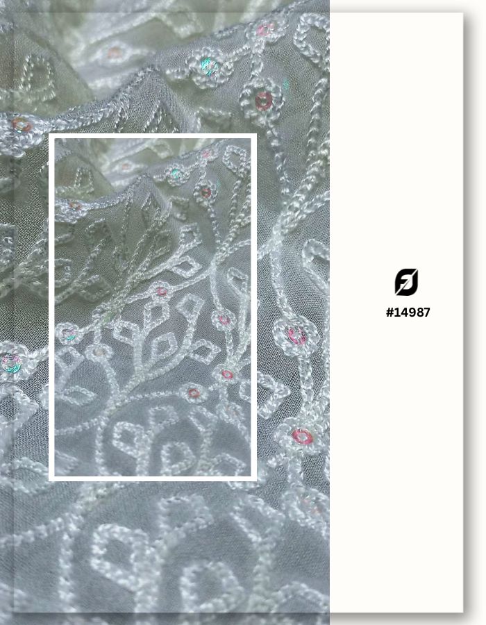 Technical Specification: D.N. 14987 (44″ Georgette / Viscose Thread, 3 MM Devdas Sequins)